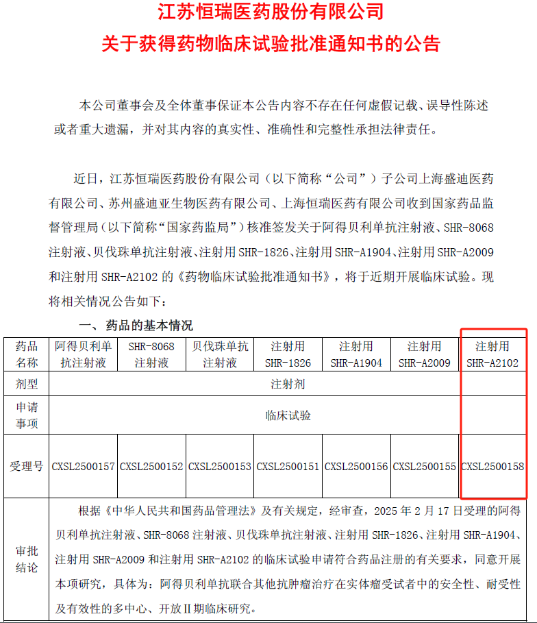注射用SHR-A2102