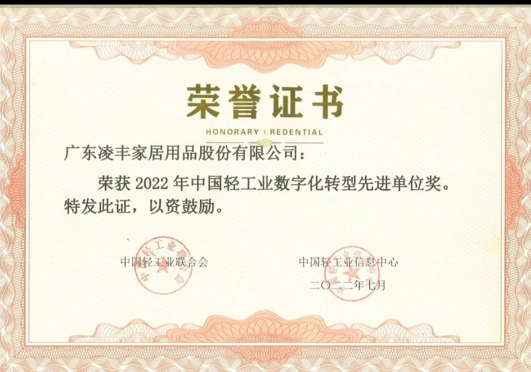 為促進數(shù)字技術和實體經(jīng)濟深度融合,賦能輕工業(yè)轉(zhuǎn)型升級,由中國輕工業(yè)聯(lián)合會主辦,中國輕工業(yè)信息中心承辦的第十二屆中國輕工業(yè)信息化大會于7月27日在杭州隆重召開。凌豐家品榮獲2022年中國輕工業(yè)數(shù)字化轉(zhuǎn)型先進單位。
