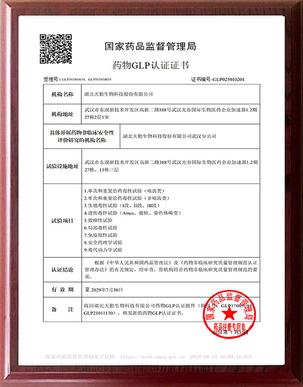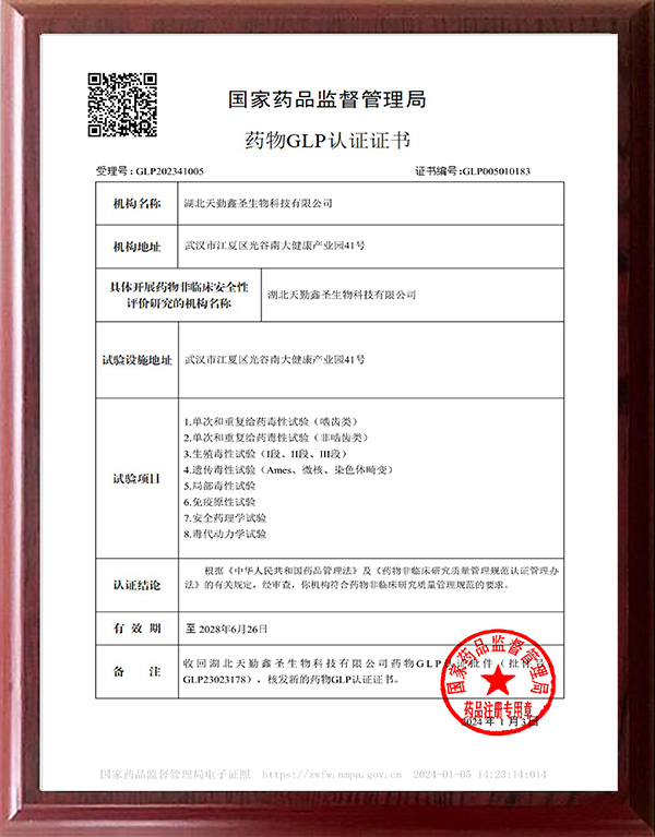 湖北天勤生物武漢分公司(安全性評價中心)是湖北省第一家民營GLP研究機構(gòu),現(xiàn)有一支近300人的專業(yè)技術(shù)團隊,具備了開展中國NMPA、美國FDA項目的質(zhì)量管理體系和資質(zhì),同時通過了國際AAALAC完全認證。公司目前擁有超過10000m的設(shè)施,可開展嚙齒類和非嚙齒類的單次給藥、重復(fù)給藥、生殖【大鼠I、II和III段;小鼠I、II和III段;兔II和兔III段;伴隨食蟹猴(性成熟)重復(fù)給藥毒性試驗的生育力評價研究、食蟹猴伴隨胎盤屏障和血乳屏障的EFD試驗和增強的圍產(chǎn)期發(fā)育(ePPND)毒性試驗】、遺傳毒性(Ames、微核和染色體畸變)、免疫原性、安全藥理、局部刺激、毒代動力學(xué)和致癌等9項GLP試驗以及藥效、藥代動力學(xué)、毒性探索性試驗(DRF)等,尤其在生物制品、化藥和中藥和兒科用藥等方面擁有大量的非臨床評價經(jīng)驗和成功案例,同時在上述藥物的生殖與發(fā)育毒性試驗設(shè)計、結(jié)果判定等方面積累了寶貴的經(jīng)驗;建立了國內(nèi)領(lǐng)先的食蟹猴生殖毒性與發(fā)育毒性研究平臺,是國家科技部重大創(chuàng)新藥制科技重大專項的藥物安全性評價示范平臺之一。